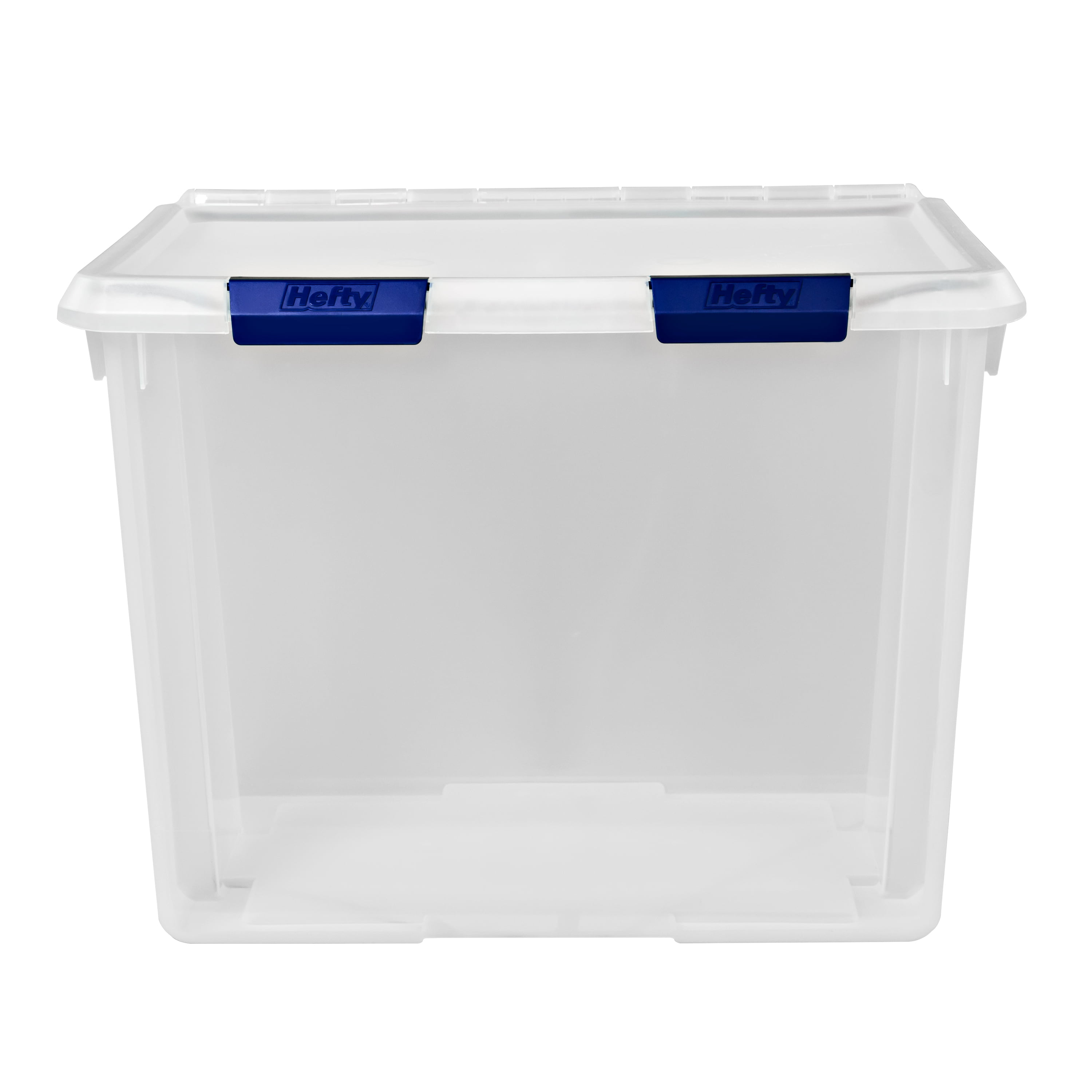 We dont know when or if this item will be back in stock. Get organized with Hefty Storage Bins Containers equipped with latched handles and double-rimmed walls for stacking. Reinforced lid for stability when stacking multiple boxes.