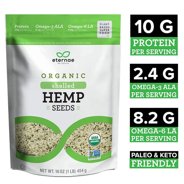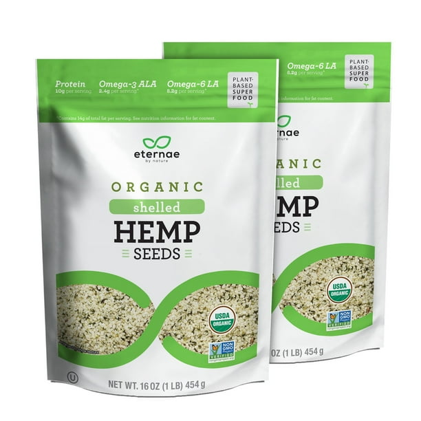 Eternae By Nature Organic Raw Shelled Hemp Seeds 16 Oz Non Gmo Gluten Free 10g Of Protein Omega 3 Ala Omega 6 Ala Salad Smoothies Cereals Yogurt Walmart Com Walmart Com