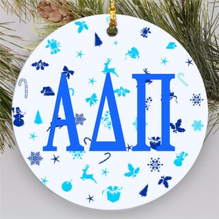 If you would like to see if I can customize one for your sorority or group please send me a message and I am happy to work with you to design something. Glass Ornament - Alpha Delta Pi Our Price. A beautiful ornament to put near your mistletoe is the Holiday Glass Ornament.