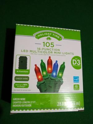 1 users rated this 4 out of 5 stars 1. Decorating with this set of lights is a simple and festive way to light any indoor or outdoor locationHoliday Time LED 16 Functions Mini Light Set Green Wire Warm White Bulbs 105 Count LED warm white lights 105 count. The Holiday Time 16 Function Multicolor Mini Christmas Lights is constructed with bulbs that stay lit even if one bulb burns out to twinkle away all night long.