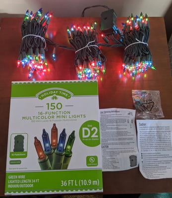 Holiday Time 150 Clear Mini Lights 16 Function Christmas Decoration. Holiday Time 16-Function 150 Multicolor Mini Lights 36 FT Long Green Wire. 150 clear incandescent mini lights.