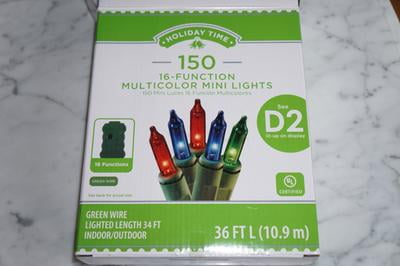 These Holiday Time Christmas lights are very easy to hang. Holiday Time 16-Function 150 Multicolor Mini Lights 36 FT Long Green. The Holiday Time 16 Function Clear Mini Christmas Lights is constructed with bulbs that stay lit even if one bulb burns out to twinkle away all night long.