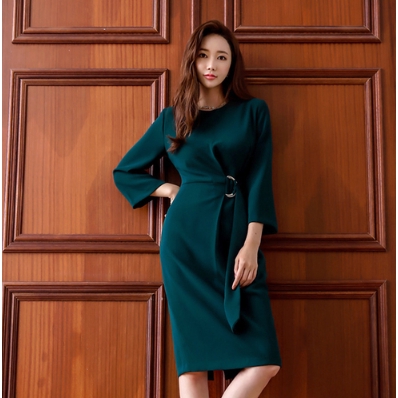 Korean Style Elegant Women Dress Office Business Work Wear O Neck Long Sleeve Dinner Party Dresses Shopee Indonesia