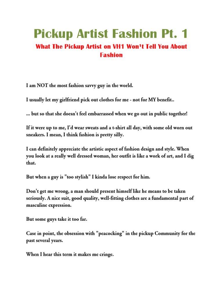 Pickup Artist Fashion Pt 1 Clothing Design