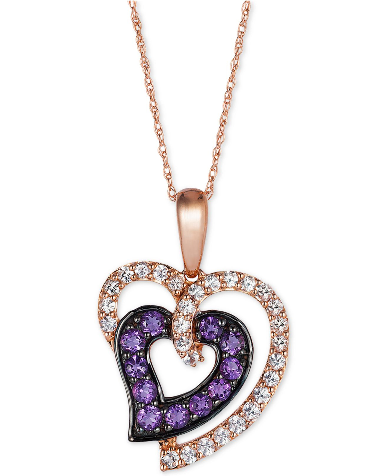 Le Vian Princess Alexandra White Sapphire 1 2 Ct T W And Amethyst 1 3 Ct T W Heart Pendant Necklace In 14k Rose Gold In Purple Lyst