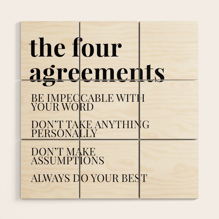 The Four Agreements Wood Wall Art By Blackandwhitetype Society6