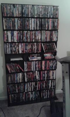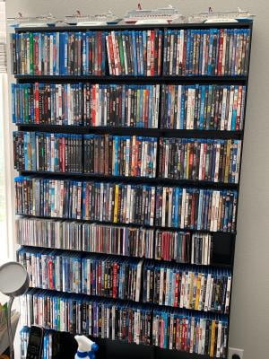 Stores 624 Blu-rays or 528 DVDs or 837 CDs NEW wider side panels IMPROVED assembly Gaming Capacity 528 Wii or 624 PS4 9 fixed shelves Blu-ray storage. This upgraded version features wider side panels a wall anchor kit and extended base provide added stability. 00 stars out of 5 stars Write a review.